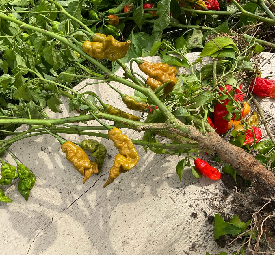 Storm on the way - lots of rain, then it gets cold after that supposedly - so I decided today had to be the day. Below is the part of the peppa harvest for the ‘24 Season at the Garden of my Ambitions: