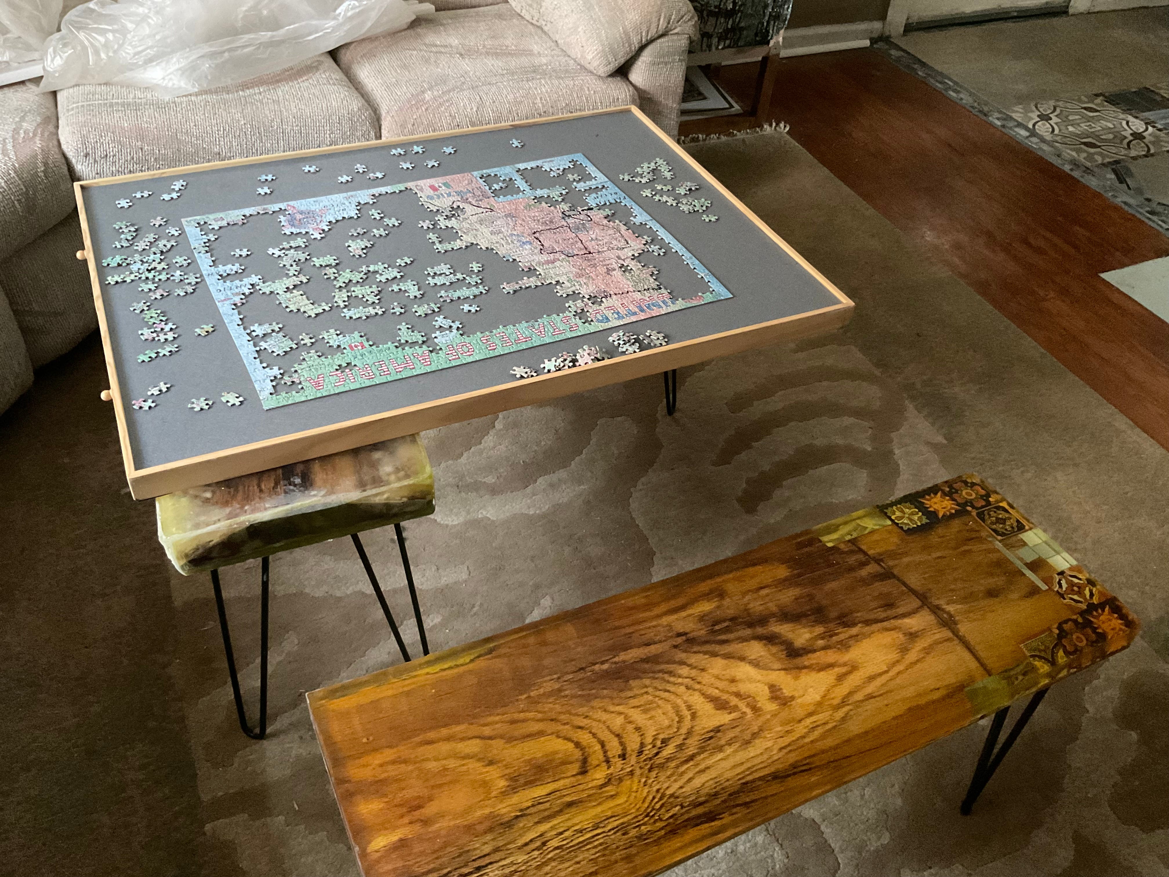 Here is the puzzle I’m working on and a coffee table or two already been made!