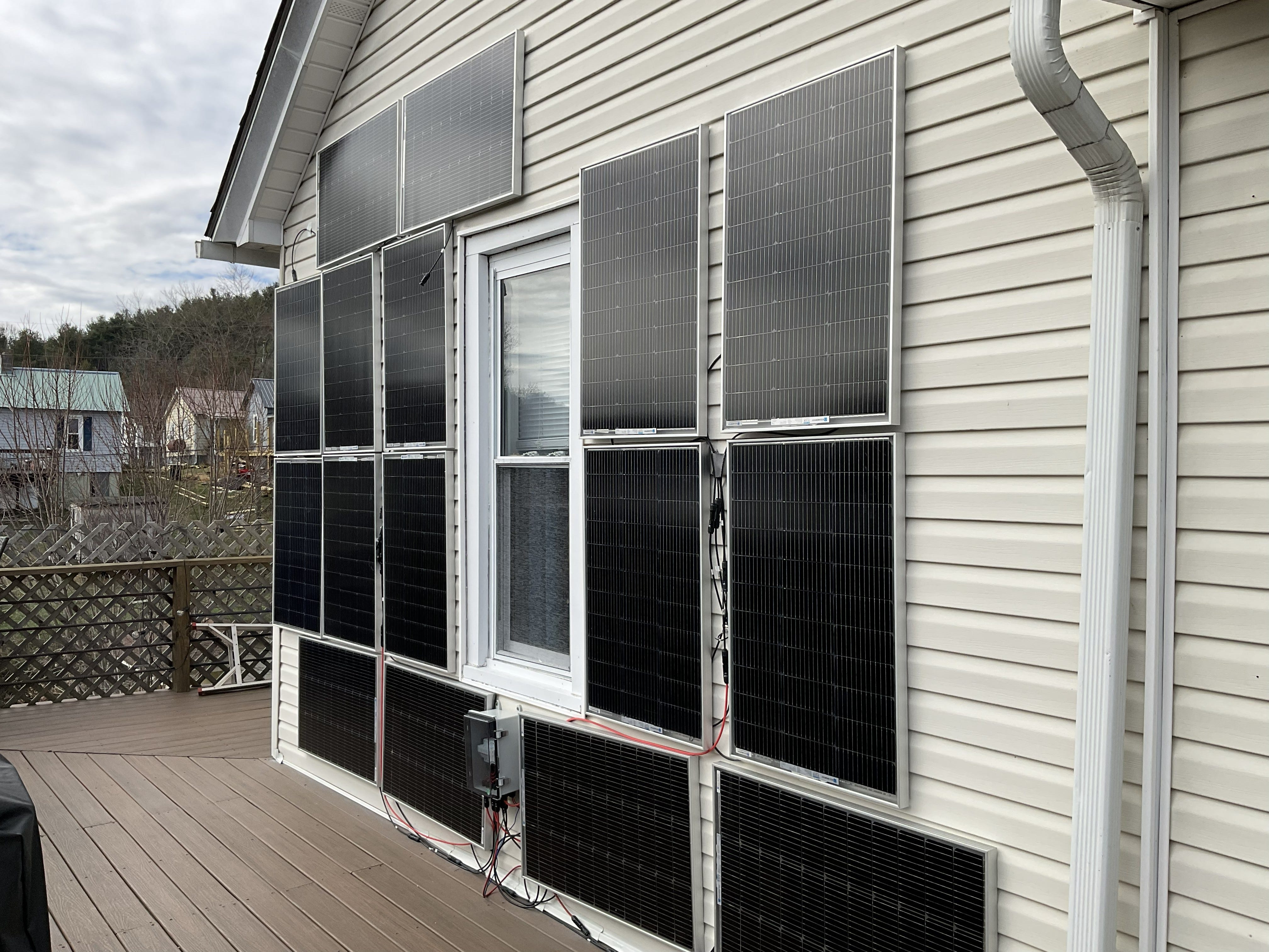 There are sixteen 100-W panels there - I run four in series and four in parallel - and then the “box” you see there is where they are wired together and then the wiring goes inside.