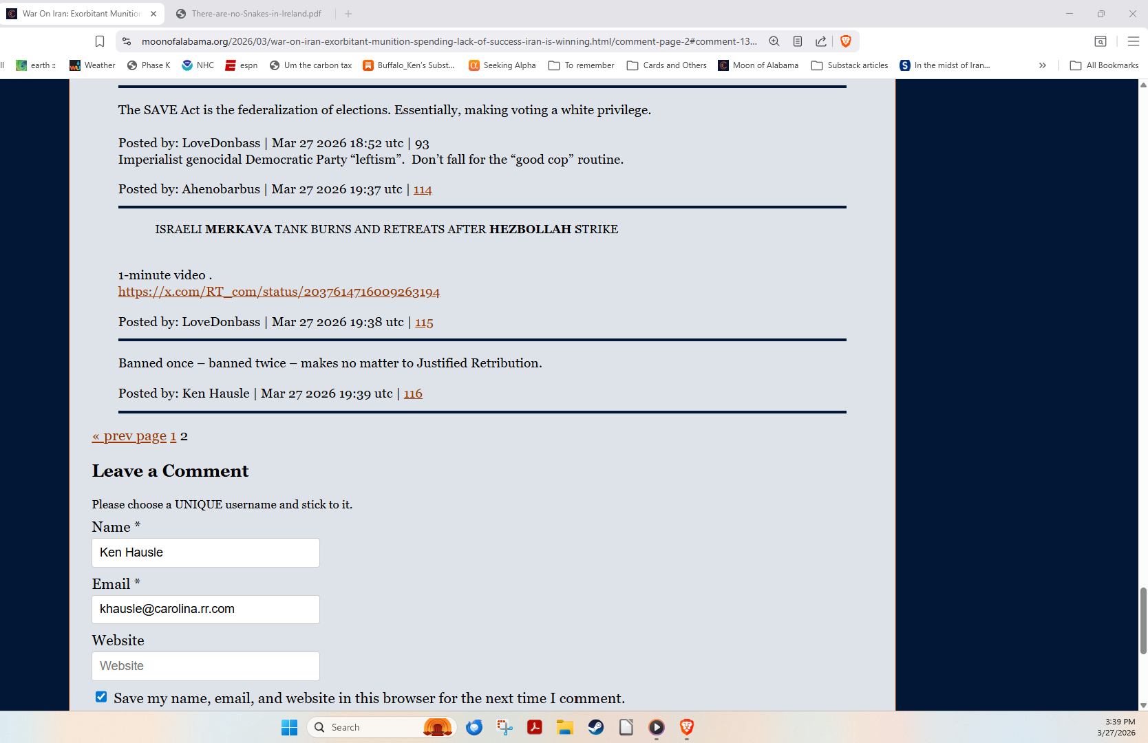 I’ve been banned from so many places for speaking truth to power.