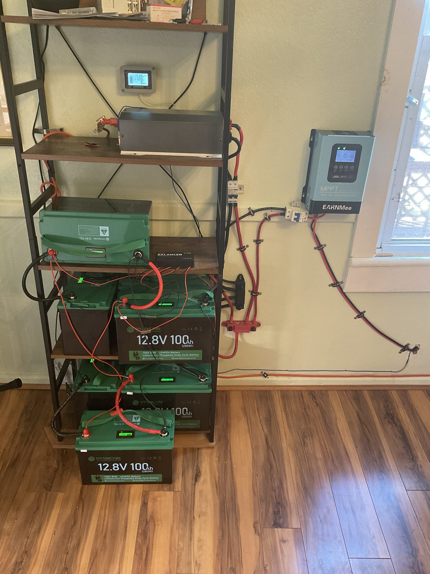 I’ve got more batteries on the way and this is an older image cause I have put in two “busbars” to simplify the wiring - but be advised there are lots of lessons to learn if you want to try to do this yourself. I’m here to help if you have any questions and one of these days I’m going to publish my final “solar panel” setup article - cause I have learned a lot - one thing I have to install when the new batteries arrive is a “battery balance” - and I will do that - and then you would be surprised how much easy energy one gets on any day when there is a little sunshine - even if cloudy.